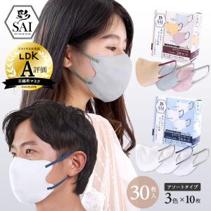 【3箱 / 1箱】彩 SAI 竹繊維 バイカラー 立体 マスク 30枚入 3色×10枚 個包装 小顔&快適フィット 大人用 4層構造 立体構造 血色マスク 不織布マスク