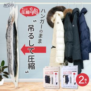 【 2個 / 1個 】 1枚で2着圧縮 2枚入 吊るせる 圧縮袋 衣類圧縮袋 ハンガーのまま 吊るして圧縮 冬物 衣替え 吊り下げ収納 圧縮パック ショート ロング