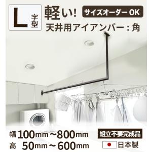 【 L字型1 】【 10mm刻みでサイズが選べる天井アイアンバー 】【 幅100〜800mm 】オーダー 室内 物干し バー 黒 ホワイト ランドリー 洗濯干し 受注生産 日本製