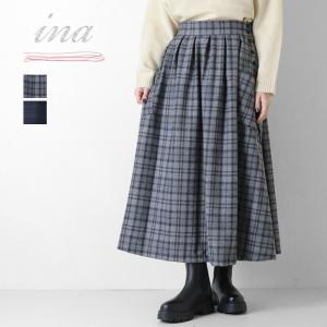 イナ ina 脇ボタンアウトポケットチェックスカート 255103 フレアスカート ロング丈 日本製 レディース 2025秋冬 裾直し対象外 /返品・交換不可/SALE セール