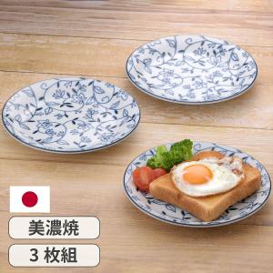 ブルーアラベスク パン&ケーキ皿 3枚組 パン皿 ケーキ皿 平皿 プレート サラダプレート 取り皿 おかず皿 皿 食器 食洗機対応 電子レンジ対応 美濃焼 日本製