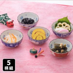 染錦 絵変り 菊型 小付鉢 5柄組 小鉢 小皿 取り皿 取り鉢 取皿 取鉢 おもてなし 普段使い 和食器 セット 和風 豆皿 豆鉢 食器 お正月 迎春 ボウル おかず皿
