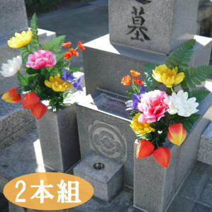 お盆 お供え お墓 造花 お墓でも使えるほおずき付仏花 2本組 ホルダー付 仏花 御盆 お盆飾り 仏具 仏壇 初盆 新盆 法要 お墓参り お供え花 供花 お墓用 仏壇用