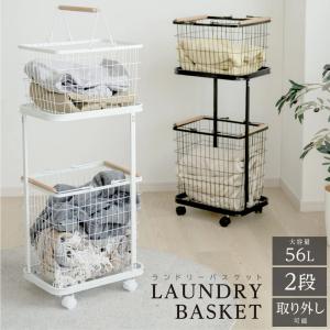 ランドリーバスケット キャスター付き 2段 収納ラック 洗濯かご ランドリー収納 洗濯物入れ バスケット スチール 大容量 持ち手付き 脱衣かご 洗面所