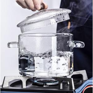 透明鍋 スープ鍋 ガラス 耐熱ポット ボウル 調理ツール ミニ鍋 実験 キッチンツール ダブルハンドル フタ付き 卓上鍋 ガラス製 電子レンジ可 容量1500ML