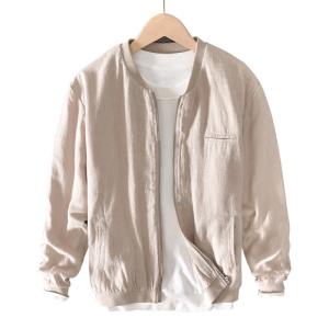 メンズ ブルゾン 無地 ジャンパー 綿麻ジャケット リネンコート 薄手 シンプル ジップアップ スカジャン サマージャケット はおり 涼しい アウター 春夏 父の日