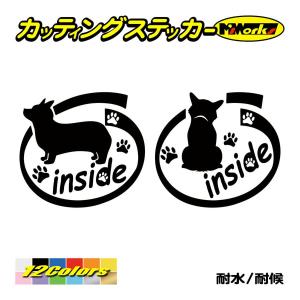 犬 車 かわいい ステッカー コーギー inside(横後1セット) カッティングステッカー おしゃれ インサイド 乗ってます リアガラス 家族 キュート アピール