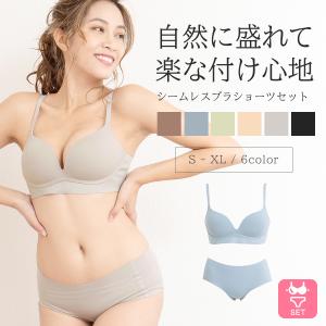 シームレス ブラショーツ ノンワイヤー ブラジャー ショーツ セット 脇肉 脇高ブラ ブラ&ショーツ ブラショーツ ブラセット 爆買 mude