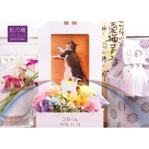 プリザーブドフラワー ギフト メモリアル 虹の橋フォトフレーム オーダーメイド 名入れ ペット お供え 花 写真立て お悔やみ 犬 猫 うさぎ