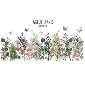 ウォールステッカー 緑の草葉 田園風景 壁紙シール 膝下の背景 赤い木の実 蝶やつる アート壁画 送料込み