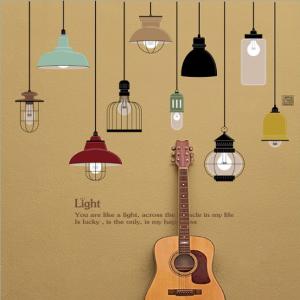ウォールステッカー ペンダントライト 10種の吊り下げ電球 壁シール レトロな 照明 英文字 インテリア 郵送無料
