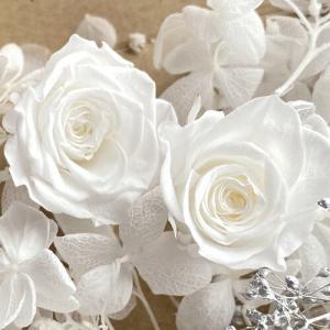 メール便(日本郵便)送料無料 プリザーブドフラワー 白 バラ 2輪 & 白 アジサイ & シルバー カスミソウ 花材セット