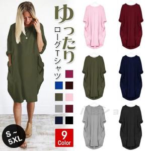 チュニックワンピース長袖ローグTシャツ体型カバーゆったり長袖着痩せパーティーレディース膝丈ショート丈ひざたけaライン
