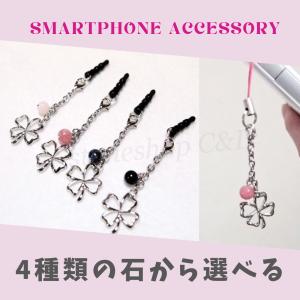 選べる石★天然石の四つ葉のクローバーイヤホンジャック スマホピアス ストラップ アクセサリー パワーストーン 天然石 四葉 植物 モチーフ