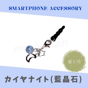ストラップに変更OK カイヤナイトの月と星のイヤホンジャック ブルー 青 水色 チャーム blue あお つき star 丸 スマホピアス ムーン スター