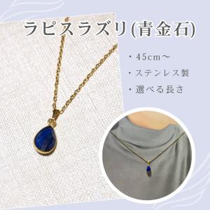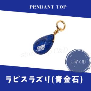しずくラピスラズリ(青金石)のペンダントトップ ネックレス トップのみ 単品 ドロップカット 天然石 金色 ストーン アクセサリー レディース 女性 瑠璃 濃紺