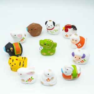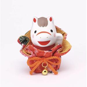 薬師窯 錦彩招福午(ふく福巾着) 令和8年 2026 招き午 馬 干支 うま 兎 うさぎ 置物 和縁起物 新年正月 海外プレゼント 贈り物