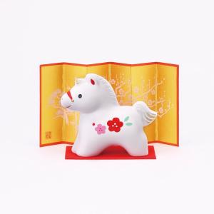 薬師窯 錦彩招福午(福梅) 令和8年 2026 招き午 馬 干支 うま 置物 和縁起物 新年正月 海外プレゼント 贈り物