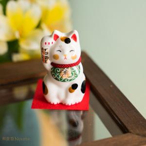 瀬戸焼 唐草招猫小(緑)招福萬来 商売繁盛 招き猫の招福置物 和の縁起物 贈り物 ギフト お祝い プレゼント クラフトマンハウス