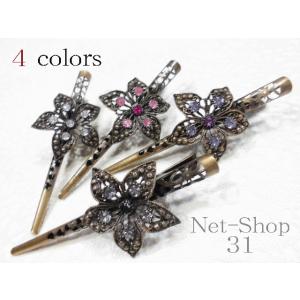 送料無料 ヘアクリップ 花飾りストーン付きコンコルドクリップ 古美 アンティーク くちばしクリップ ヘアアクセサリー 髪飾り レディース 1794