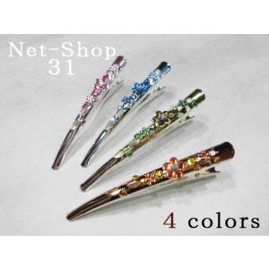送料無料 ヘアクリップ ストーン付きフラワーデザインクリップ 2個セット ハーフサイズ 小さめ ビーククリップ ヘアアクセサリー 2429