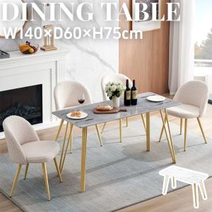 Newvalue 大理石柄ダイニングテーブル ティーテーブル キッチンテーブル モダン長方形 140cm 4-6人用 木製 ゴールドヘアピンレッグ シンプル