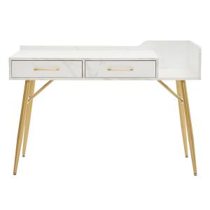 Newvalue 大理石柄ダイニングテーブル 長方形ダイニングテーブル 木製ダイニングテーブル 鏡面光沢仕上 ゴールドメタルヘアピンレッグ