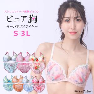 ブラジャー ショーツ セット〜ピュア胸〜ノンワイヤーブラ☆ リラックス モールド ブラセット(bs-n) おうちブラ[メール便不可]
