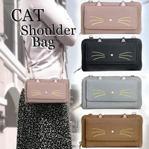 A1379 猫のひげ 鼻 刺繍 可愛い お財布 ショルダーバッグ, 多機能 携帯 入れ 小猫 cat ねこ キャット 黒猫 ポーチ ショルダー ポシェット ネコ 耳 フェイス