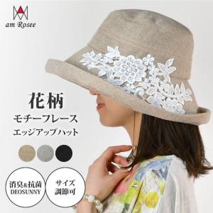 【送料無料】花柄モチーフレースエッジアップハット レディース 帽子 花柄 レース エッジアアプハット UVカット カジュアル 消臭 抗菌