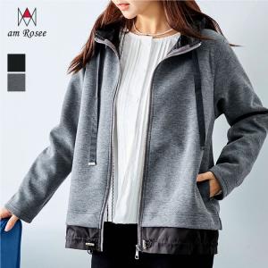 異素材切替フードパーカー◆レディース ジャケット アウター パーカー 羽織 異素材 切替 長袖 フード付き 防寒