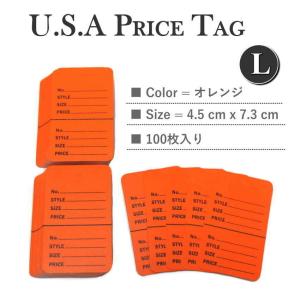 USA アメリカンスタイル プライスカード Lサイズ オレンジ 100枚 タグ 値札 下げ札 英字 ミシン目 切り取り式