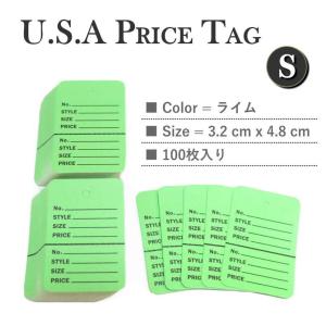 USA アメリカンスタイル プライスカード Sサイズ ライム 100枚 タグ 値札 下げ札 英字 ミシン目 切り取り式