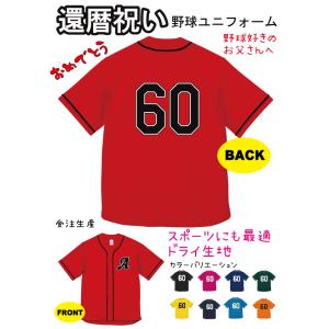 還暦 祝い ドライアスレチックベースボールシャツ【背番号 名前 プリント】コミコミ価格 野球好き 還暦 お祝い 記念日 プロ野球 ユニフォーム 60歳