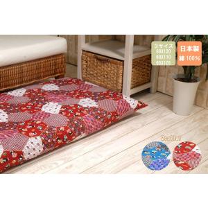長座布団 花パッチワーク柄長座布団カバーセット 68×120サイズ 赤ちゃんのおひるね ごろ寝にも カバー付きでいつも清潔 全2色 側生地綿100% 日本製
