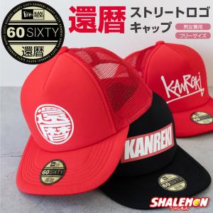 還暦祝い 帽子 ( キャップ )( 還暦 ストリート ロゴ ) ( 60 ) 還暦 60歳 男女兼用 メンズ レディース フリーサイズ 赤 黒 漢字 ロゴ プリント (A6)