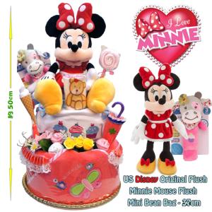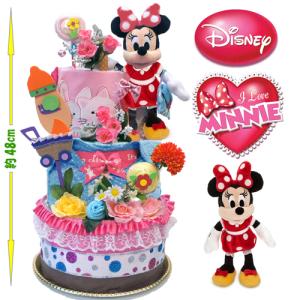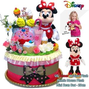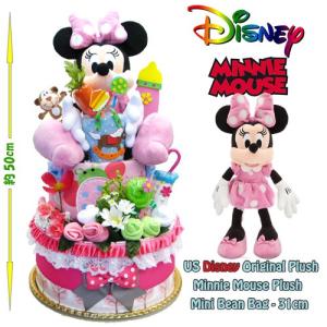 おむつケーキ ミニーマウス (US Disney Store 正規品) 女の子 出産祝いに大好評 赤ちゃんグッズを詰め込み 豪華3段