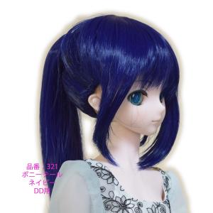 321 ネイビー色のポニーテール ドールウィッグ