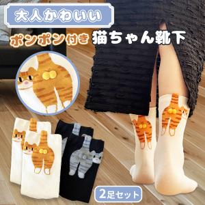 猫靴下 ねこ ソックス 白黒 2足セット 立体ボール付き コットン レディース かわいい 通気性 蒸れにくい ミドル丈 カジュアル