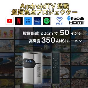 【350ANSI 50インチ】超短焦点 プロジェクター AndroidTV搭載 Wi-Fi Bluetooth バッテリー内蔵 軽量500g MECOOLストリーミングデバイス付属 FaCLOSS