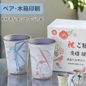 \ 木箱印刷 / 信楽焼 玄 カップ ペア 彫刻無し 還暦祝い ギフト セット 御祝 お湯割りコップ 陶器 結婚祝い 記念日 ビール 湯呑み