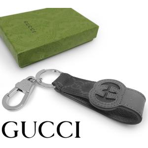【超美品 ほぼ未使用】 グッチ GUCCI キーホルダー キーリング チャーム GGロゴ レザー グレー ブラック メンズ レディース 箱 シリアル有