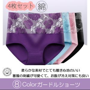4枚セット ショーツ レディース 綿 コットン 深め ハイウエスト 下着 インナー パンツ すっぽり お得 母の日