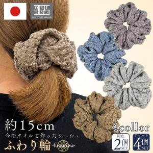 今治タオルで作った シュシュ ふわり輪 大きい 約15cm 2個 セット ゆるふわ 日本製 綿100% 髪 アクセント 4カラー ワッフルガーゼ 吸水 かわいい オシャレ