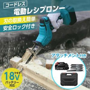 シプロソー 充電式 バッテリー付き 電動ノコギリ マキタバッテリー互換対応 無段変速 高速切断 電動のこぎり ブレード4本付き 金工 木工 片手 小型 女性 家庭用