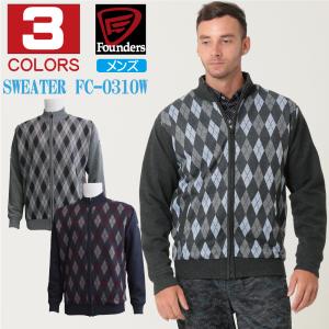 ゴルフウェア メンズ フルジップ 防風 セーター FC0310W アーガイル柄 Founders Club ファウンダースクラブ 2022年秋冬モデル おしゃれ 裏地付き