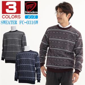 ゴルフウェア メンズ 丸首 ラウンドネック 防風 セーター FC0316W ノルディック柄 Founders Club ファウンダースクラブ 2023年秋冬モデル おしゃれ 裏地付き