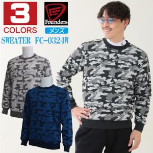 ゴルフウェア メンズ 丸首 ラウンドネック 防風 セーター FC0324W カモ柄 Founders Club ファウンダースクラブ 2024年秋冬モデル おしゃれ 裏地付き