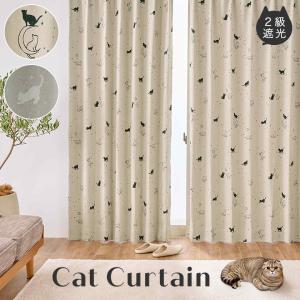 遮光 カーテン 猫 ネコ 2枚セット 星 月 2級遮光 スター 星空 ねこ オシャレ かわいい 2枚セット 送料無料