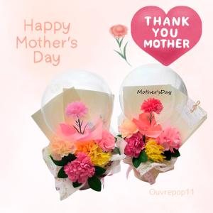 母の日 フラワーバルーン 文字入れOK バルーンアレンジ レッド ピンク カラフル カーネーション 透明バルーン クリアバルーン おしゃれ 置き型アレンジ